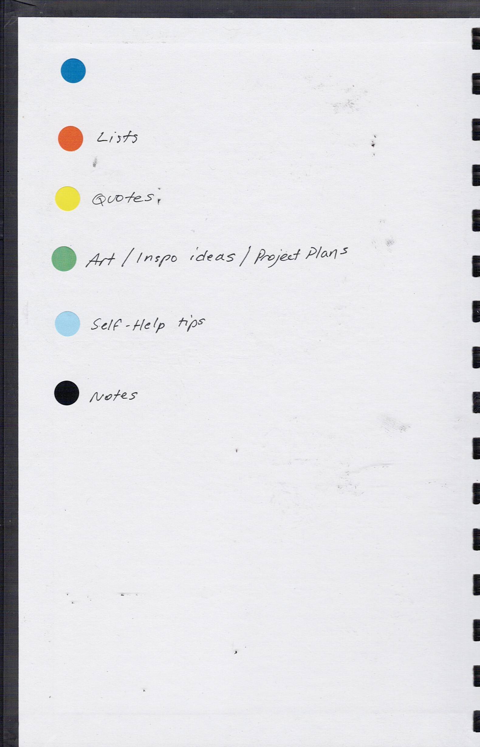 my sketcbook/commonplace! i used this primarily as a sketchbook in the beginning, but it soon started morphing into a catch-all for my ideas and such, so it has taken on to become a commonplace book for me. i adapted a key system to keep track of my notes and what i'm writing down. very simple, nothing overly extravagant.