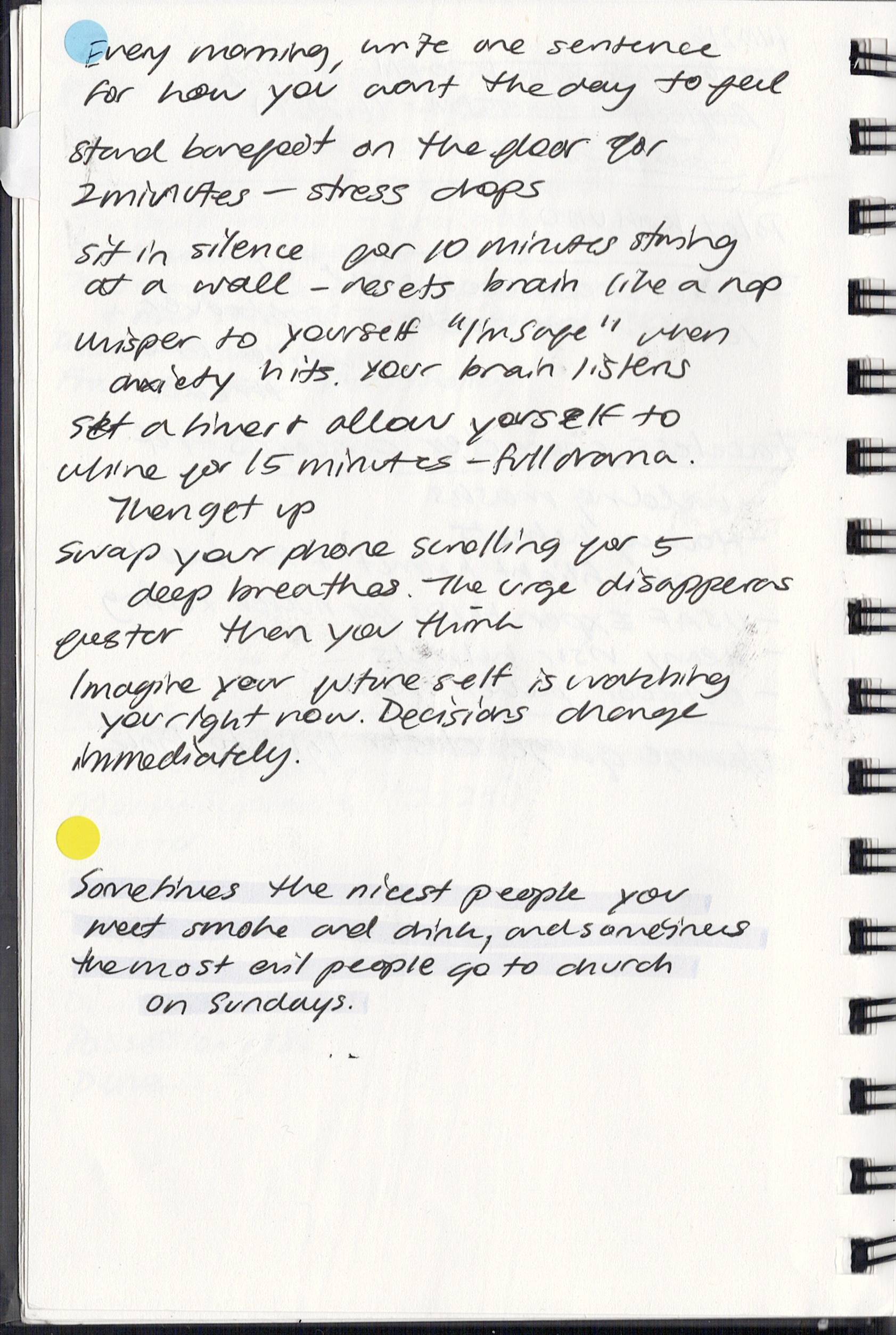 some examples i picked is: a page of drawings i did planning out an eventual keychain to get my boyfriend of me :3, notes from school and some drawing ideas i have to eventually explore, and project ideas. there's a page of self-help tips i've been practicing and a quote i really liked. opening this book has been very enjoyable and a constant reminder of stuff i can work on and has really helped me in focusing on projects i want to do. having a physical place to draw inspiration from is nice! i really recommend it, rather than saving posts on social media or endlessly scrolling on pinterest instead. a physical catch-all i can carry around and draw in has been wonderful.