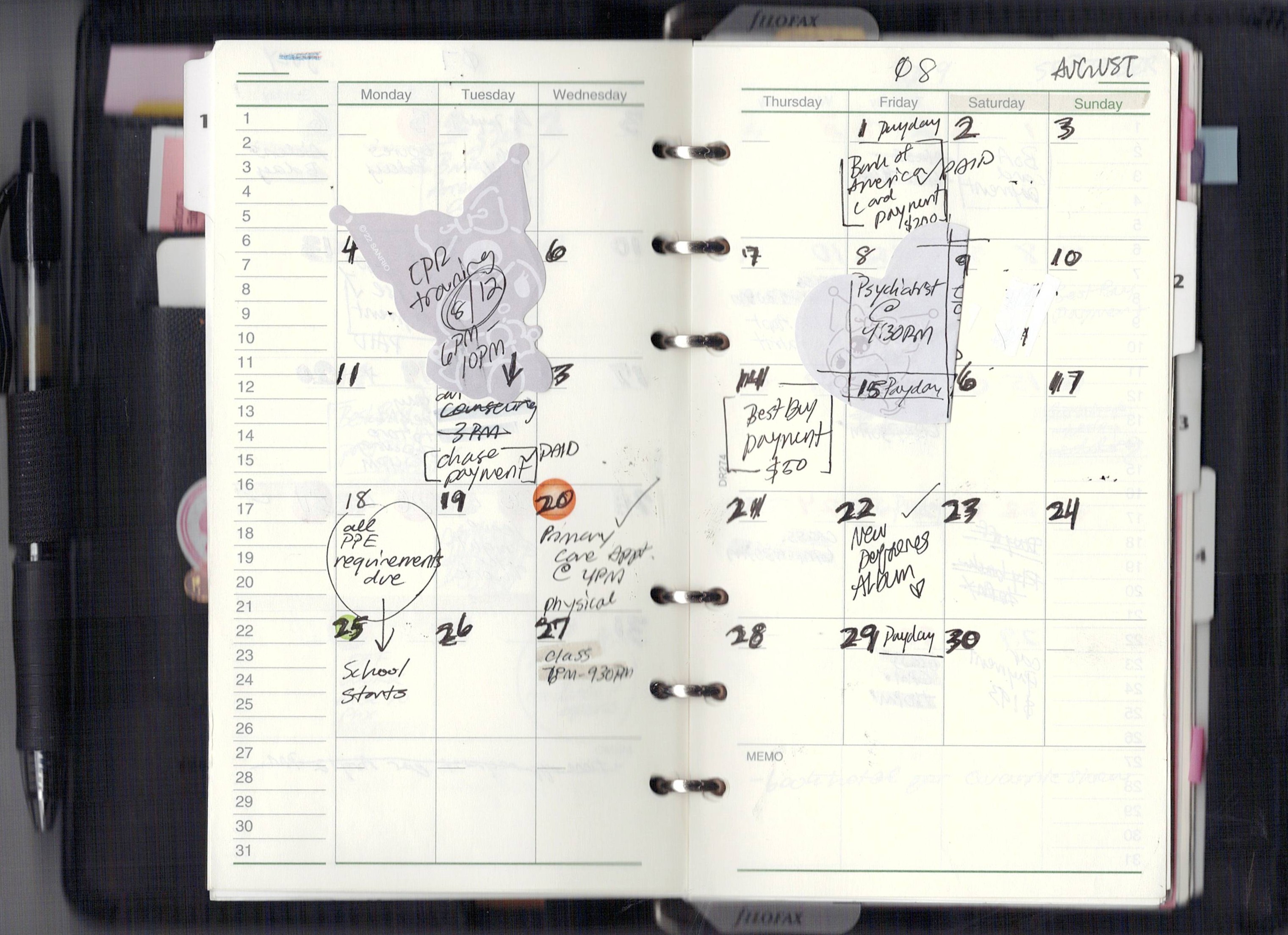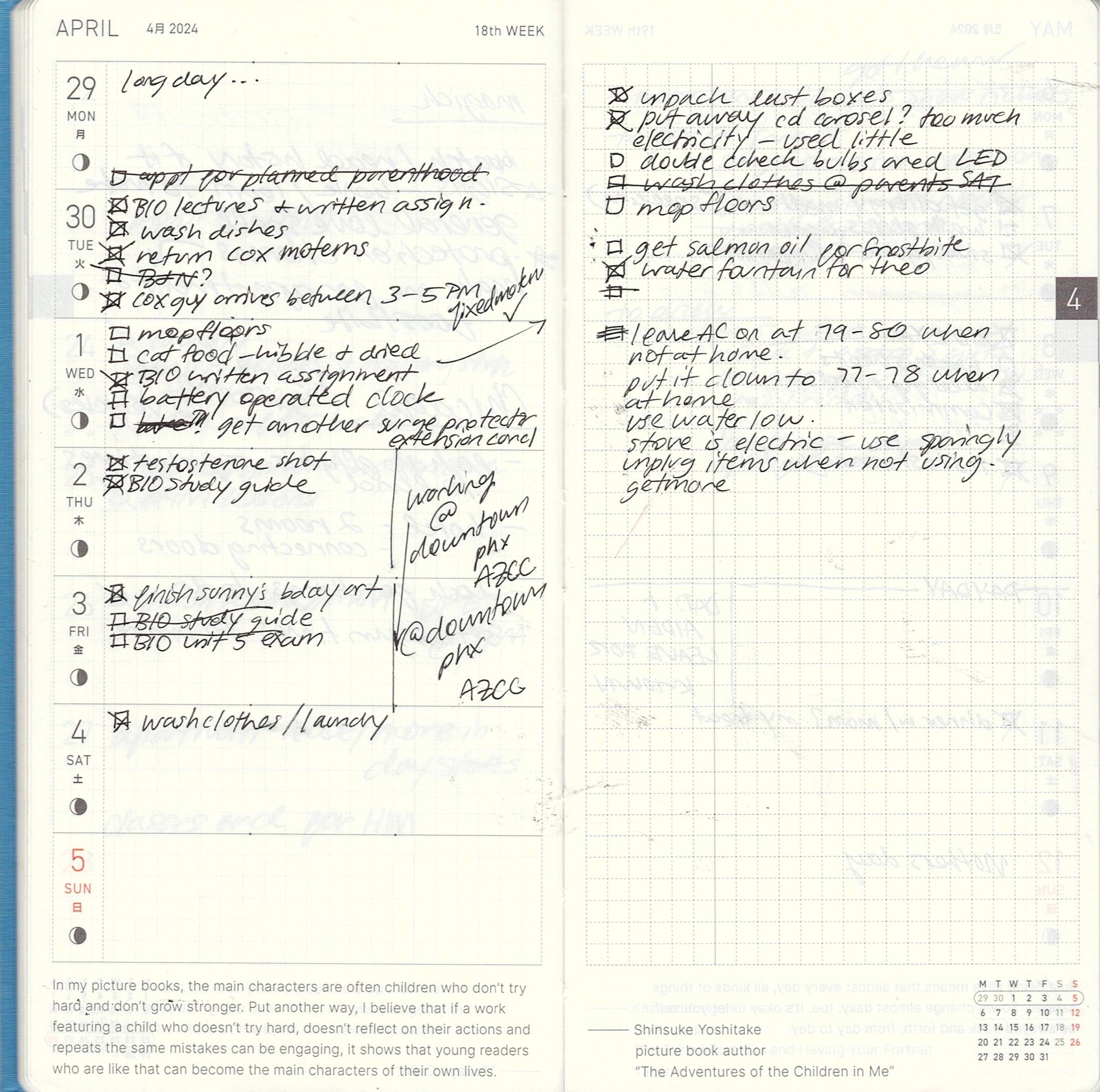 i just stick with the pen you're given when you buy a hobonichi, and one highlighter for more important events. the yearly spread i will try (keyword:try) to use it as a mood tracker. the memo pages i use for whatever, typically ends up as my work notes or school notes. or just phone numbers or emails i need later on. passwords. the usual!